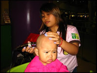 I heard from other moms that some salons are giving out sort of certificates for the first hair trim of the baby. My churchmate suggested a shop @ Trinoma thinking that the certificate and the hair cut will only cost 200+. But when we went there and asked for the package price, whoa! We were really surprised. It was 500+, too expensive for a hair cut. I was a bit hesitant but since we were already inside the shop, we just go for it and promised ourselves that we will no longer visit that shop again ๐