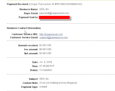 This morning, when I opened my email, I noticed that there were two mails which came from PayPerPost. I immediately read the first and I was so happy to know that it was a notification stating that the payment for the post I made was already sent to PayPal. I hurriedly logged on to my PayPal account and there it was, my first ever earning from blogging, lol! The amount is really very small, but the important thing is, I proved to myself that PayPerPost is real and not just a hoax company. I hope that I can get more opps in the coming days 😀